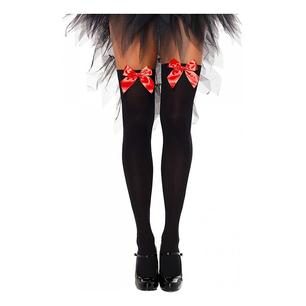 Svarta Knästrumpor med Röd Rosett Deluxe One size