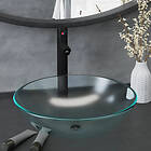 vidaXL Handfat med kran och bottenventil frostat härdat glas 3098445