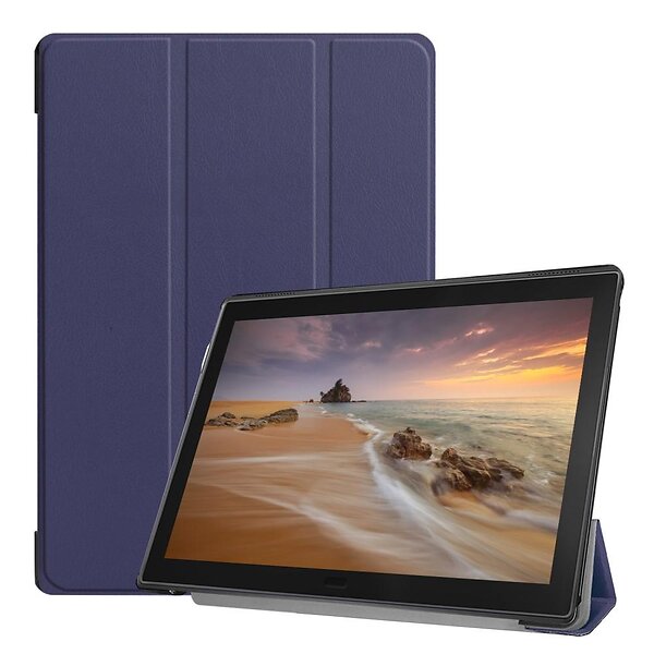 Inskal Lenovo Tab E10 Läderfodral m. Tri-Fold stativ mörkblå