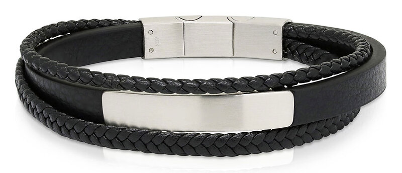 Ace of Spades svart armband med platta läder/stål SSLB-116