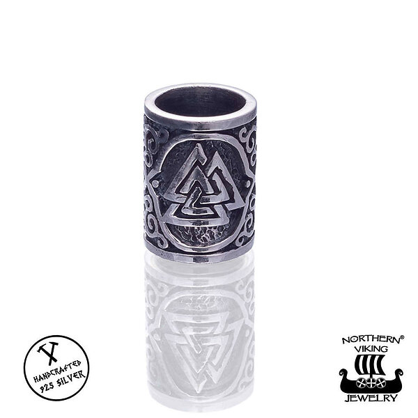 Northern Viking Jewelry Silver Valknut skäggsmycke NVJHE014