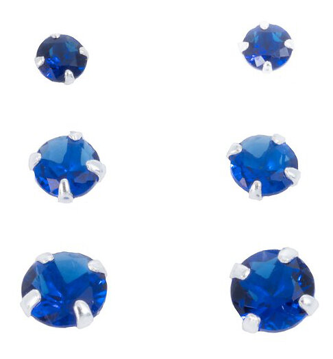 Silver Bar smyckeset med tre par zirkonia örhängen blue 8741