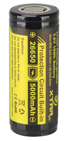 V 26650 Li-ion-batteri 3.6 5000 mAh
