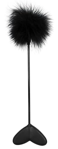 Love Bad Kitty pennstav svart – förförisk fjäderpiska med hjärta-knäböj, erotiska rollspel, eleganta fjäderpuschel-örter för par, svart