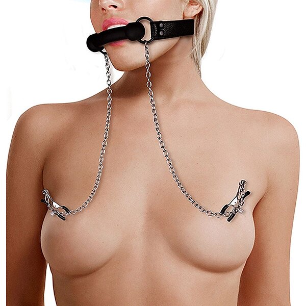 Ouch! Silicone Bit Gag with Nipple Clamps