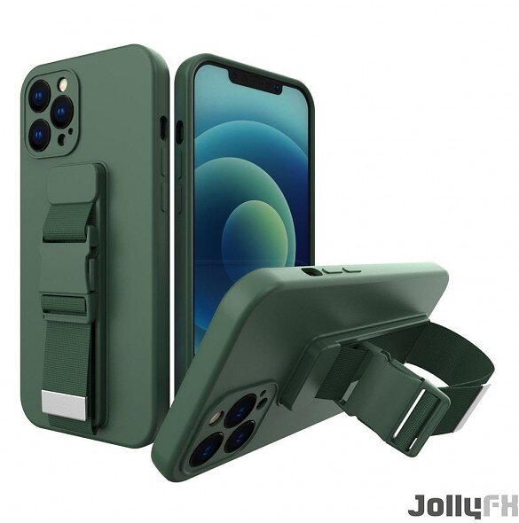 JollyFX Rope-fodral gel TPU-airbag-fodral med snöre för Samsung Galaxy A22 5G Mörkgrön