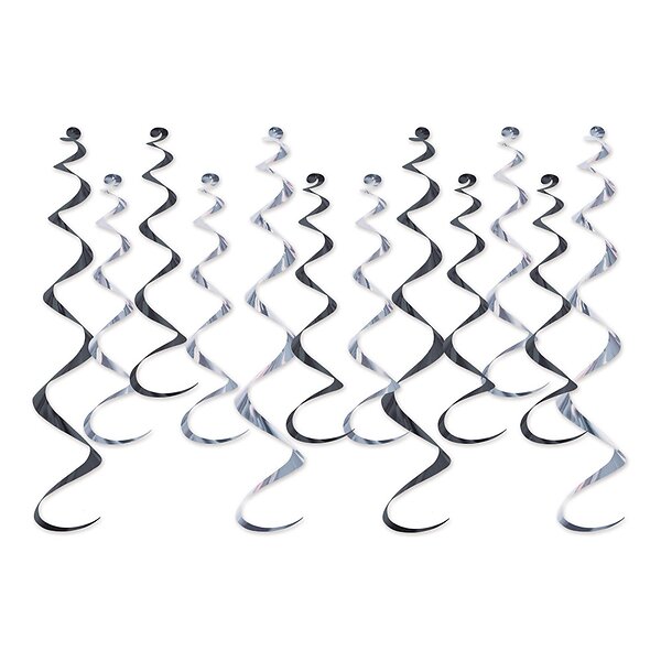 Swirls Musta/Silver Metallic Hängande Dekoration 12-pack