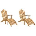 vidaXL Däckstolar med fotstöd 2 st massiv teak 3073203