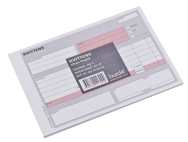 Burde Kvittensblock A5L 50 blad