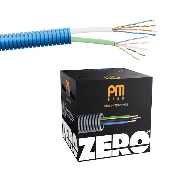 Flex PM Kat6 ZERO Multimediakabel fördragen, trippelskärmad, halogenfri 16 mm x 100 m, 2xU/UTP6
