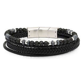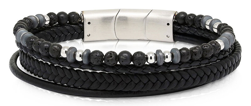 Ace of Spades svart armband läder/lavasten/stål SSLB-118
