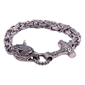 Northern Viking Jewelry Byzantine kejsarlänk Thor's Hammer Wolf Head armband NVJRA016