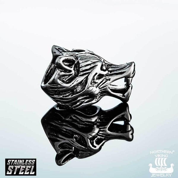 Northern Viking Jewelry NVJHE009 skäggsmycke Wolf Head