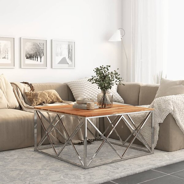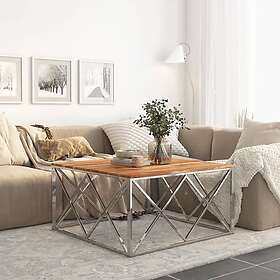 vidaXL Sohvapöytä silver rostfritt stål och massivt akaciaträ 349983