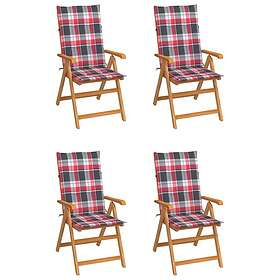 vidaXL Trädgårdsstolar med dynor rött rutmönster 4 st massiv teak 3065543