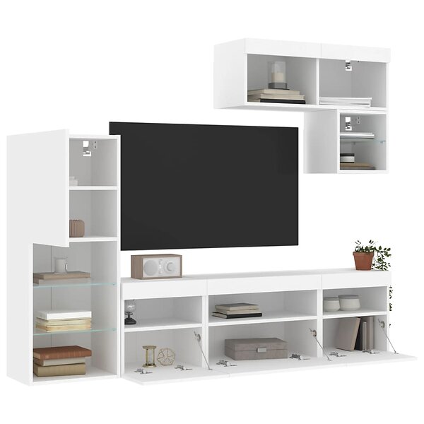 vidaXL TV-taso 6 delar LED vit konstruerat trä 3216732