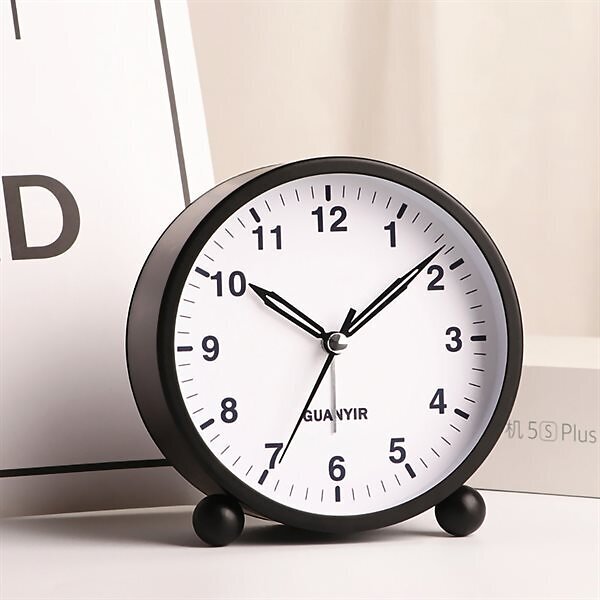 24.se Tyst Analog alarm Clock Rund Svart