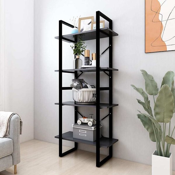 vidaXL Bokhylla 4 hyllplan grå 60x30x140 cm spånskiva 806439