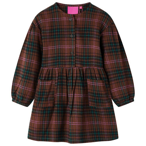 vidaXL Klänning med långa ärmar för barn konjaksbrun 116 14451 (Jr)