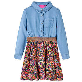 vidaXL Klänning med långa ärmar för barn marin och denimblå 116 14121 (Jr)