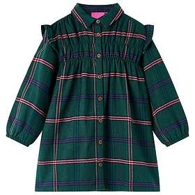 vidaXL Klänning med långa ärmar för barn ribbad mörkgrön 140 14418 (Jr)