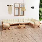 vidaXL Loungegrupp med dynor 11 delar honungbrun massiv furu 3077327