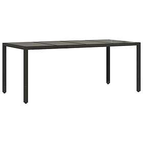 vidaXL Trädgårdsbord med glasskiva svart 190x90x75 cm konstrotting 365537