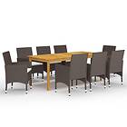 vidaXL Matgrupp för trädgården med dynor 9 delar brun 3095868