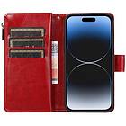 CaseOnline Dubbelflip Zipper 9-kort Apple iPhone 15 Pro Max Röd