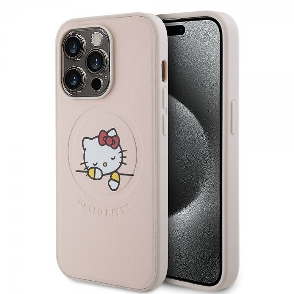 Hello Kitty iPhone 15 Pro Skal Debossed Logo MagSafe Rosa
