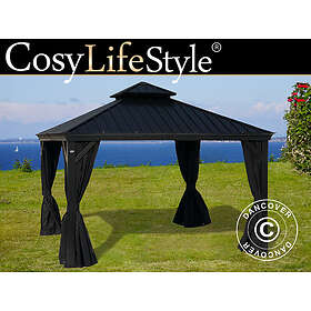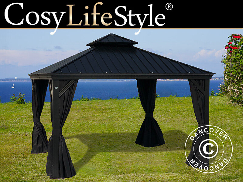 Dancover Paviljong Trädgårdspaviljong Santa Fe med gardiner och myggnät, 3x4,25m, Svart