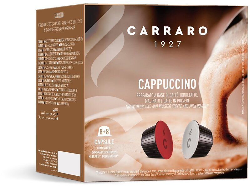 Carraro 1927 Cappuccino Dolce Gusto -kompatibel kaffekapsel. 8+8 st.