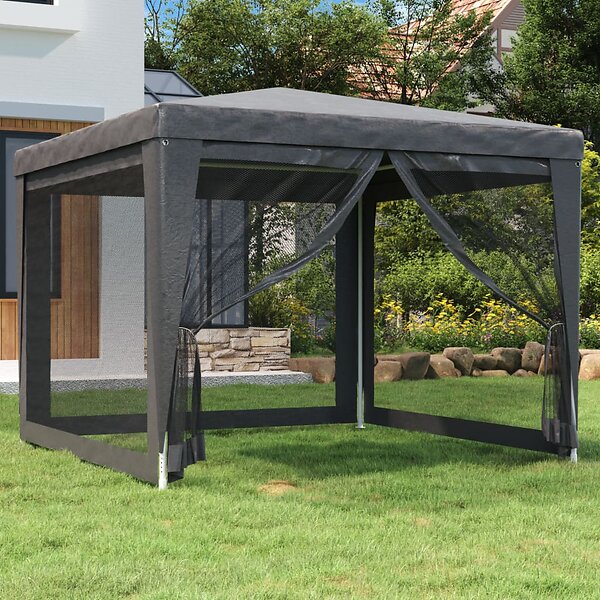 vidaXL Juhlateltta 3x3m (Antrasiitti) HDPE 4 verkkoseinällä