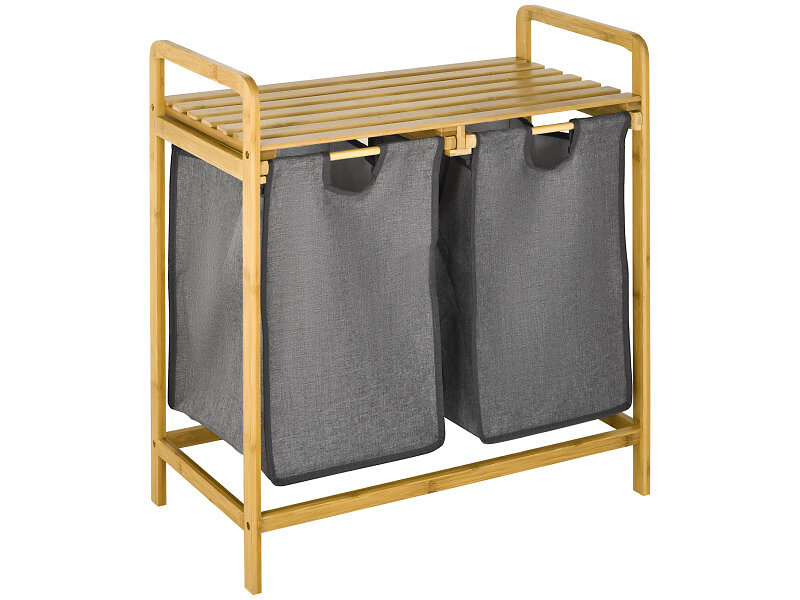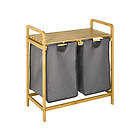 Homcom Panier à linge en bambou 2 paniers amovibles non-tissé gris foncé