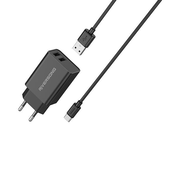 Riversong Väggladdare 2x USB 12W med USB/USB-C Kabel