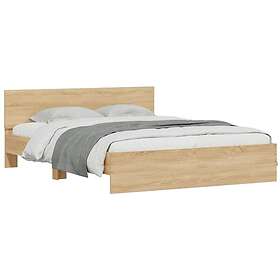 vidaXL Sängram med huvudgavel och LED sonoma-ek 160x200 cm