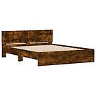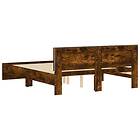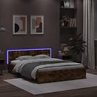 vidaXL Sängram med huvudgavel och LED rökfärgad ek 160x200 cm
