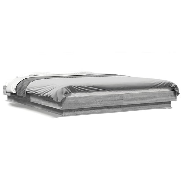 vidaXL Sängram med LEDs grå sonoma 150x200 cm konstruerad trä
