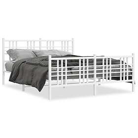 vidaXL Sängram med huvudgavel och fotgavel vit metall 150x200 cm