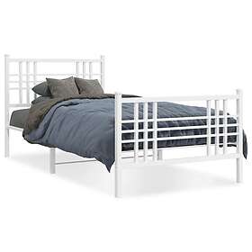 vidaXL Sängram med huvudgavel och fotgavel vit metall 90x190 cm