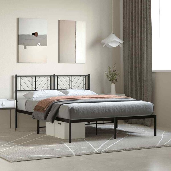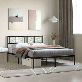 vidaXL Sängram med huvudgavel metall svart 135x190 cm