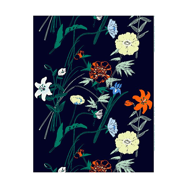 Marimekko Puutarhakutsut bomullstyg Navy-green-sitrone-orange
