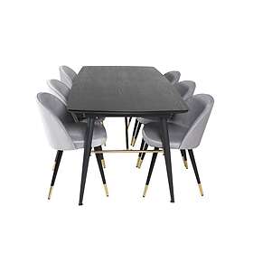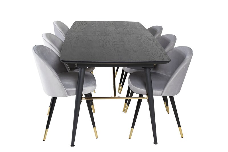Venture Home Gold Matgrupp Förlängningsbar 180-220 cm Rektangulär med 6 Velvet stolar Svart/Guld Matgrupper Ljusgrå,Svart,Guld