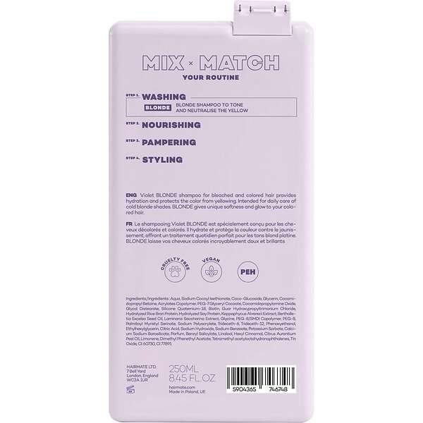 Tuotteen HAIRMATE Blonde Violett Shampo 250ml halvin hinta juuri nyt on 11,90 €. Hintaopas vertailee 2 kaupan hintoja ja tarjouksia.