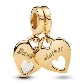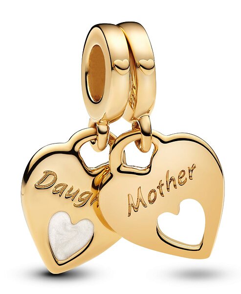 Pandora Moments Mother and daughter hearts 14k gold-plated split dangle with shimmering white enamel berlock 769187C01