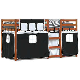 vidaXL Loftsäng med gardiner vit&svart 75x190 cm massiv furu