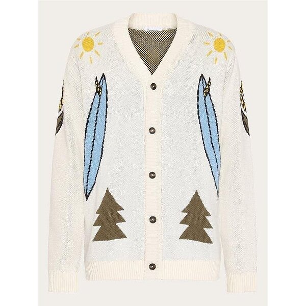 KnowledgeCotton Apparel Jacquard Trees Yes Please V-Neck CottonKnit Cardigan (Herr)