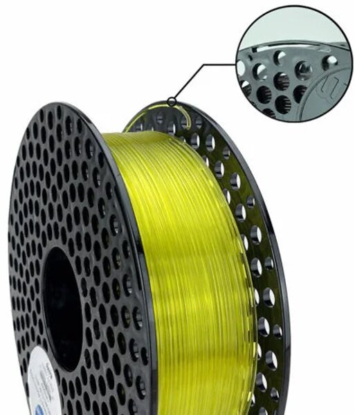 Tuotteen paino: 1 kg, Materiaali: PLA, Väri: Keltainen, Läpinäkyvä