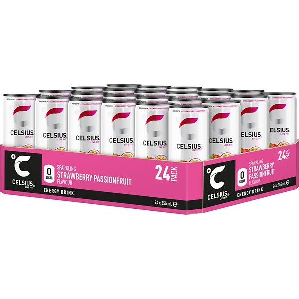 Celsius Mansikka Passionhedelmä 355ml 24-pakkaus