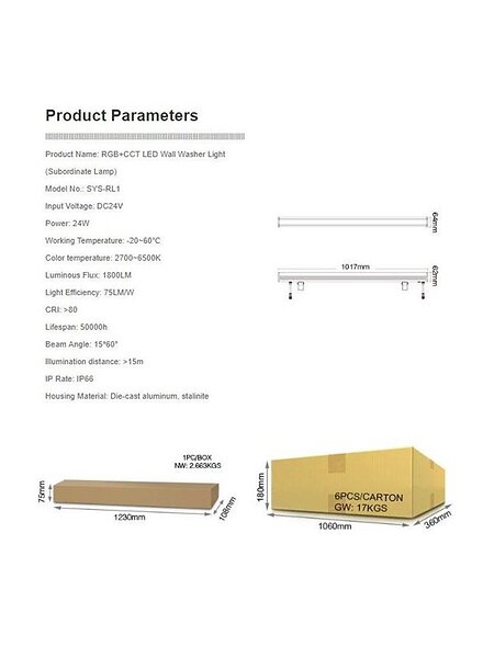 MiBoxer 4038816080202 Seinävalaisin RGB-CCT 2700K-6500K 1800lm 24W